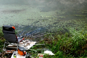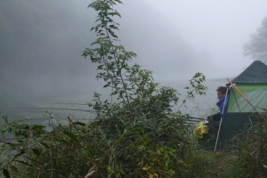 물안개 속에서 아침입질을 기다려 봅니다. |