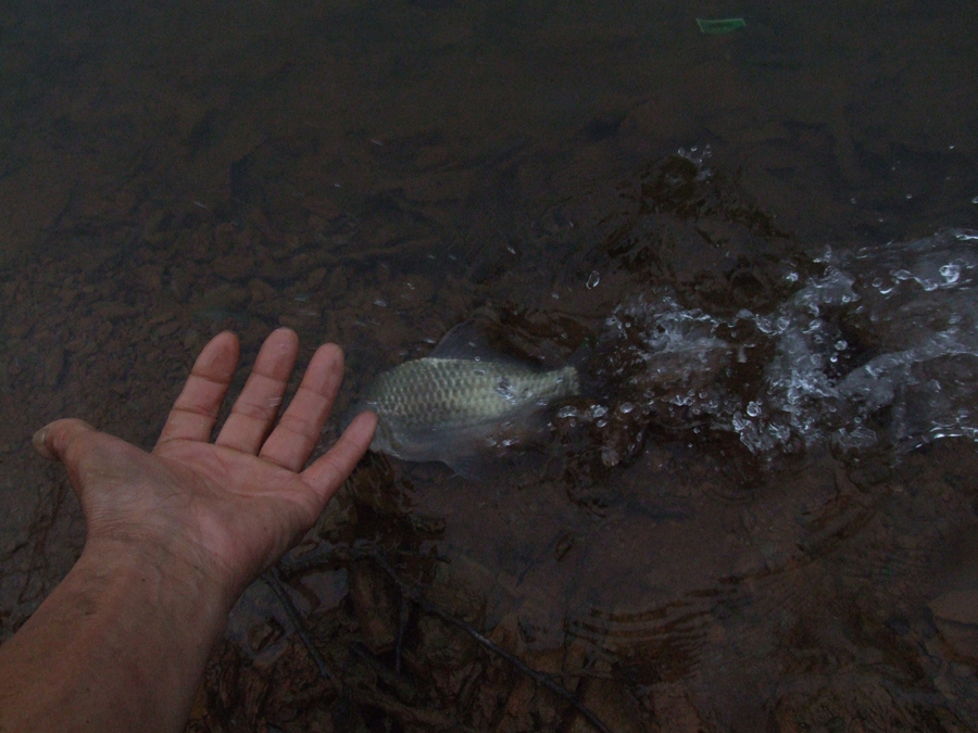 저에게 찾아와준 고마운 놈입니다. 밤 2시 40분에 올라왔습니다. 사실 첫 번째 입질은 8시쯤에 왔습니다만 아쉽게도 늦었습니다. 오랜만에 생미끼이다보니 떡밥조사가 챔질 타이밍을 잊어버렸습니다. 포기하고 아방궁 속에서 꿈나라를 헤메이는데 형님이 깨웁니다. 붕어 입질이 시작 되었답니다. 사실 이놈도 형님 덕분에 품에 안게 된 것입니다. |