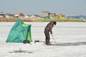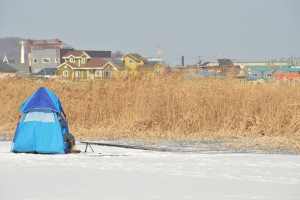 바람이 강해서 이렇게 텐트를 쳐야 그나마 낚시를 할 수 있겠네요. |