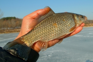 이런 붕어로 10마리는 잡아야 재미있는 얼음낚시가 될 것 같습니다. |