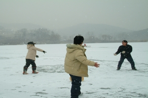 | 밀집모자 박프로님과 한판 눈싸움이 시작되었습니다. |