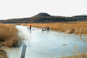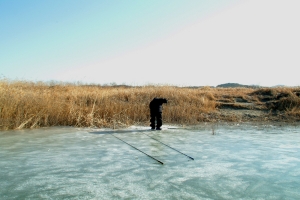 | 살얼음이 바로 바로 구멍에 잡힙니다. |