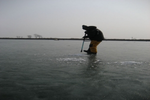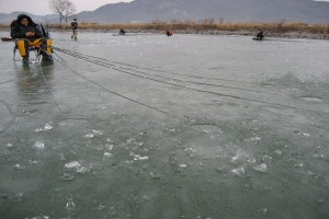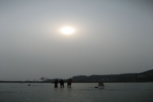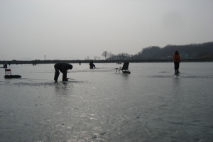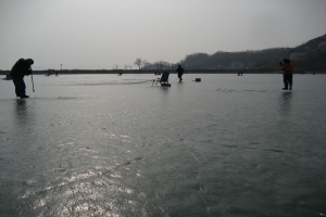 | 어~~ 춥기는 춥다... 빈수레님이 얼음낚시에 임하는 자세입니다. |
