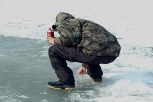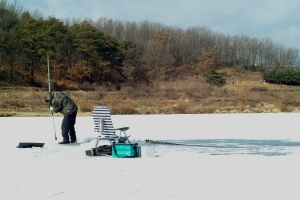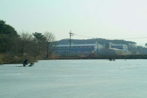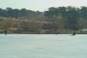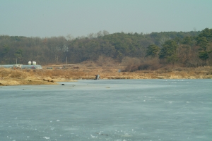 낮시간이 되니 연안 수초대가 녹고 있습니다. |