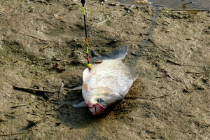 | 지렁이를 물고 나온 9치급 붕어입니다. |