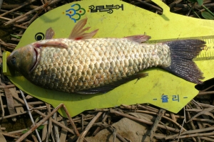 지렁이를 물고 나온 9치급 붕어입니다. |