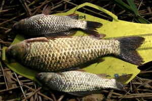 | 손으로 잡은 샛수로 4짜 붕어입니다. |