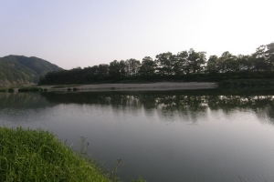 | 유속이 없는 곳을 택한 필자의 낚시자리 |