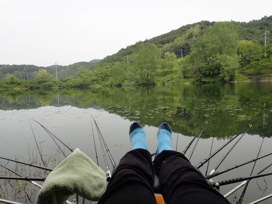 이렇게 내려와서 다시 낚싯대를 폅니다. |