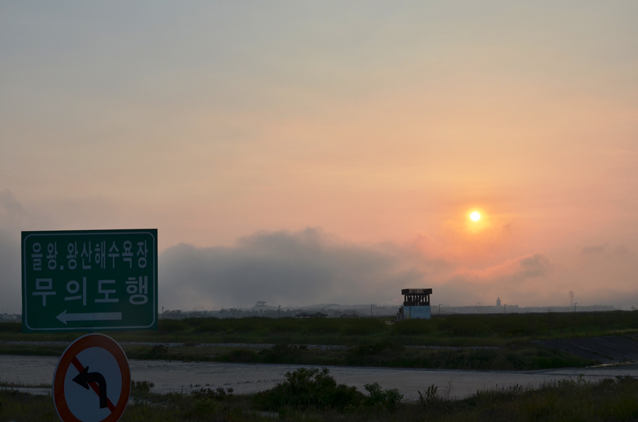 노을지는 신공항에도 안개가 밀려듭니다. |