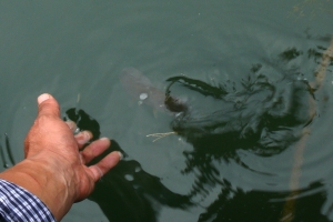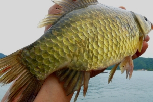 | 황금빛 채색을 보여주는 자갈섬 수초대에서 나온 토종붕어입니다. |