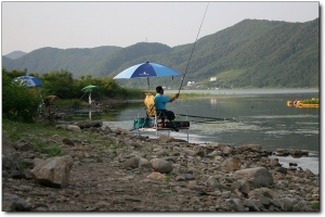 팔도님은 어딜가고 찌불만 보이는 자리 저멀리 무언가 풍덩거리는 소리들 뿐 |