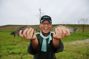 여조사님께서 7치급 토종붕어를 낚아내십니다~ |