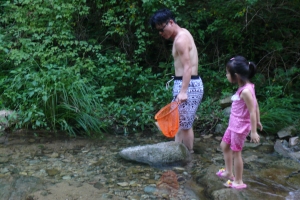 | 맨꽝님과 민서는 뜰채로 피라미 잡는 중이네요. |