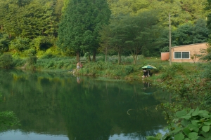 땡볕 더위에 대편성을 하고 낚시를 즐기는 마눌님입니다. |
