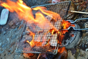숯불에 구운 삼겹살과 시원한 맥주로 저녁을 먹어요. |