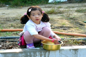 이제 그릇을 자기가 씻어 오겠다고 할 정도로 컸습니다. |