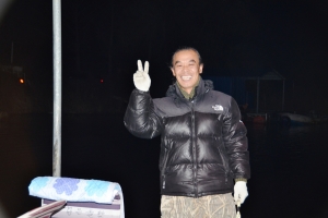 좌대 난방이 너무나 뜨거워 몸을 식힌다는 미수조사님.ㅎㅎㅎ |