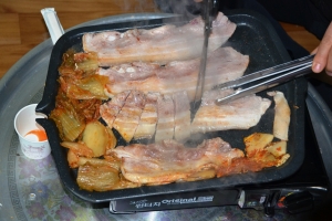 | 엔틱님이 준비해주신 삼겹살로 맛난 야참을 먹어요. |