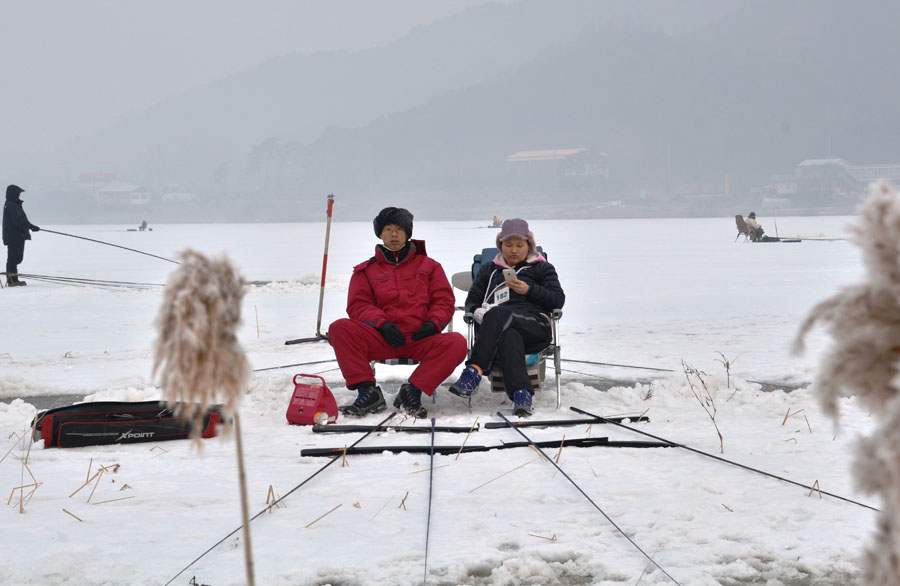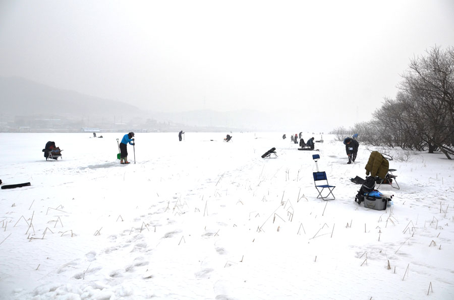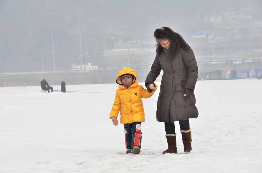 할아버지와 손자의 얼음놀이가 정이 훈훈하게 느껴지네요. |