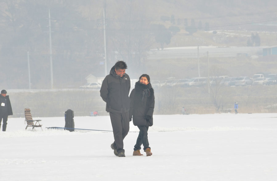| 할아버지와 손자의 얼음놀이가 정이 훈훈하게 느껴지네요. |