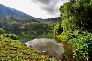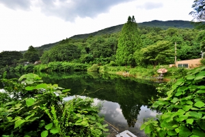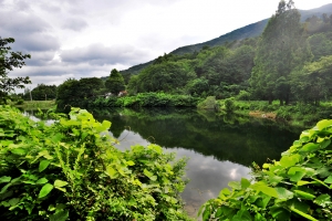 | 제방 한가운데서 저수지 전체를 담아 봅니다. 요즘 장마로 늘 사진이 어둡습니다. |