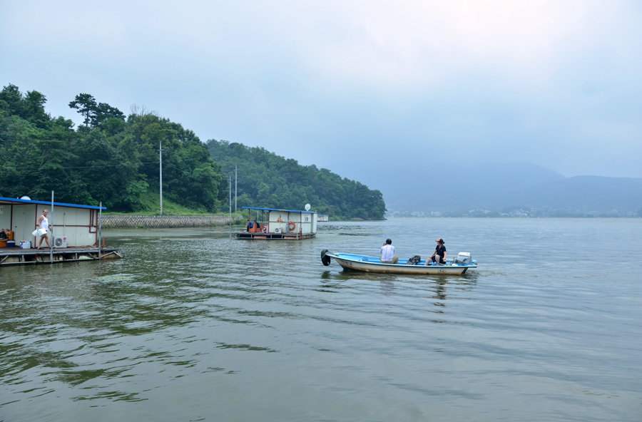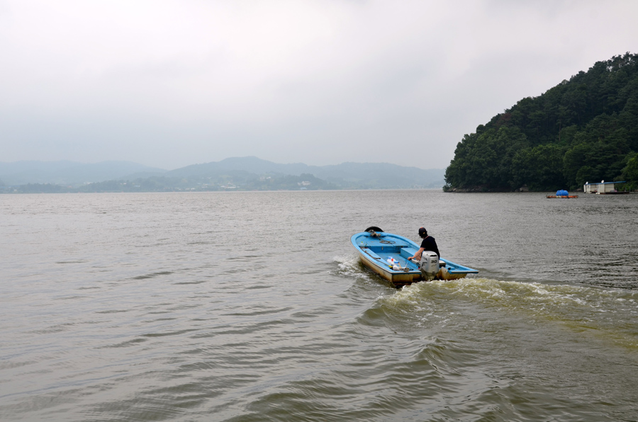 필자를 좌대에 내려주고 돌아가는 인천좌대 사모님.^^* |