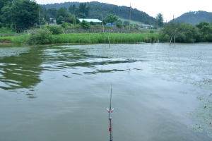 | 필자의 낚싯대 위에 잠자리가 앉았어요. |