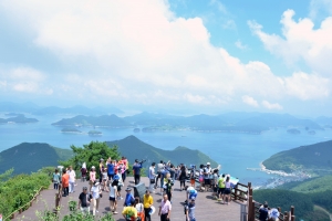 | 통여시 미륵산 정상에서 한려수도를 내려다본 풍경입니다. |