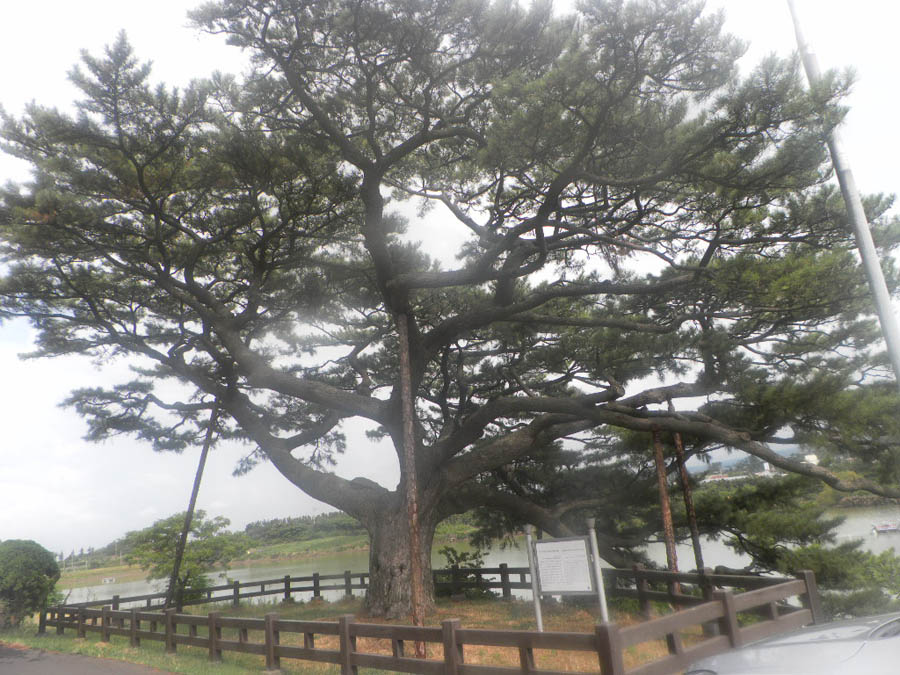 | 수산지에 멋진 소나무가 있네요.. 눈이 덮히면 마치 곰 형상같다해서 곰솔이랍니다. (수령 400년) |