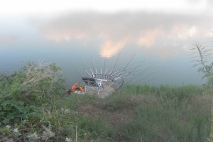 | 새벽1시까지 버티다가 새벽5시에 나와보니 받침대가 돌아갈 정도로 입질이 들어왔었네요~ㅠ |