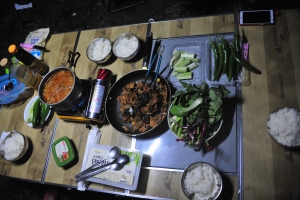 | 모두들 텐트를 말리며 지난밤 조과를 얘기하며 맛난 아침을 먹습니다. |