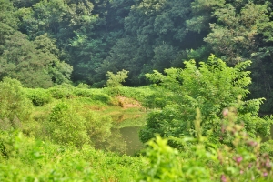 | 진입이 어려워 쥴리님이 필자가족을 입구에서 기다리다 구비구비 한참을 들어가 작은 소류지가 나옵니다. |