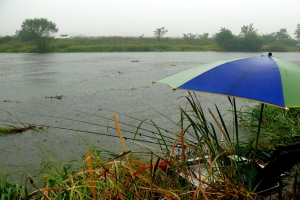 그 와중에도 낚시를 하겠다는 마눌님입니다. |