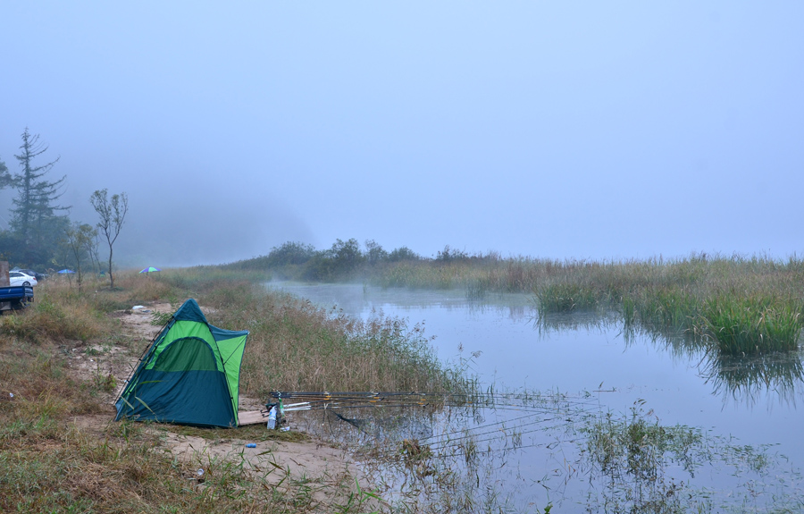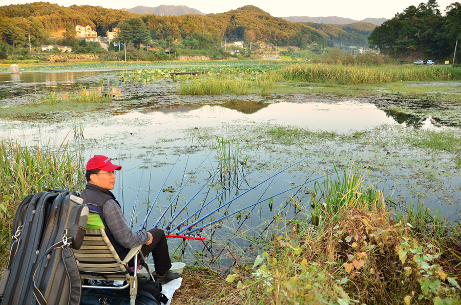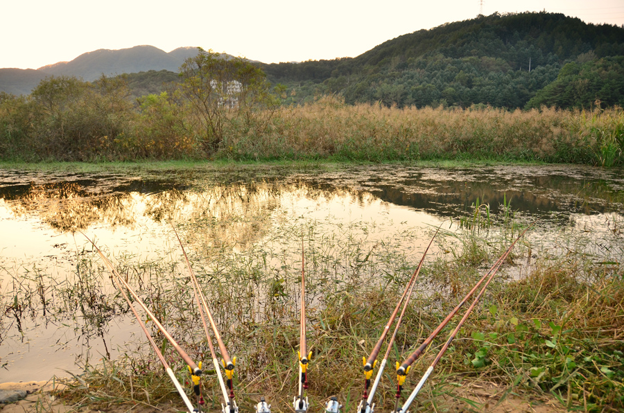 | 이렇게 세워논 찌에서 붕어가 낚입니다. |