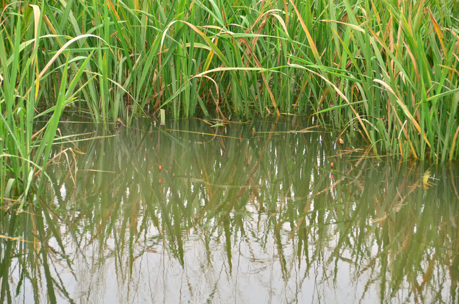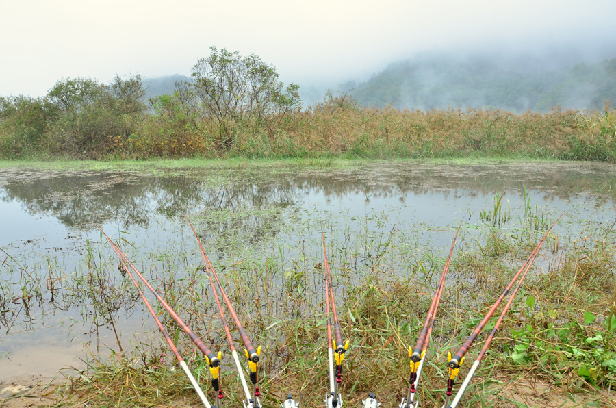 이렇게 세워논 찌에서 붕어가 낚입니다. |
