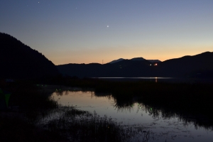| 청평땜 본류권 샛수로에 노을이 물들어갑니다. |