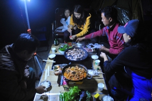 쥴리님의 후원터 취재관계로 모두들 늦게 도착해 바쁘게 채비를 널고 저녁을 먹습니다. |