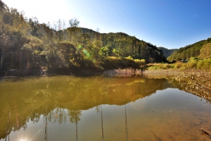 | 제방 무너미쪽에서 찍어본 소류지 전체 모습입니다. 참 아까운 소류지 입니다. |