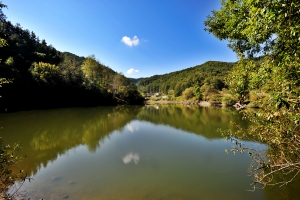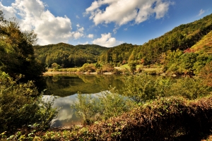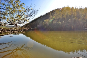 | 청명한 가을 하늘색과 예쁜 소류지의 풍경이 조화를 잘 이룹니다. 점점 짙어만 가는 가을색~~ |