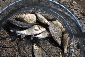 | 권프로님의 살림망 입니다. 쓸만한 붕어들이 보입니다. 그래도 심심치 않게 손맛을 보셨네요~ |