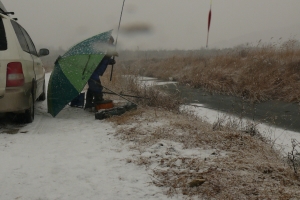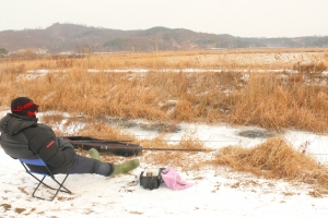 | 수초칼에 얼음망치를 달고 구멍을 뚫었습니다. |