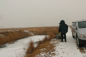 얼음을 탈 수도 없고 뚫기에는 너무 힘듭니다. |