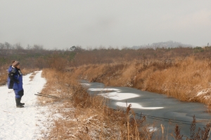 | 가장 얼음이 약한곳을 찾아 봅니다. |