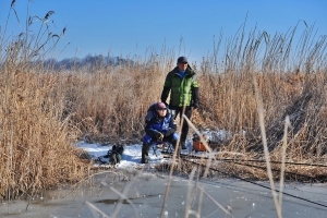 공식적인 올해 첫 얼음낚시 입니다. 얼음을 타고 들어가 구멍을 뚫고 다시 밖으로 나왔지만~^^ |