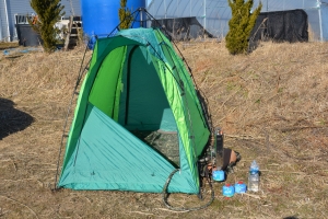 | 이렇게 텐트 안에 아랫목 온수매트를 설치하면 겨울 낚시에 최고로 좋아요. |