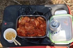 | 마루아치님이 준비한 라면에 필자 어머님 김치로 점심을 먹습니다. |