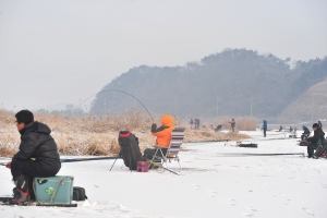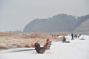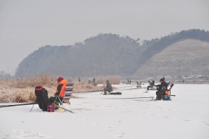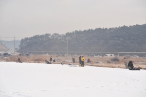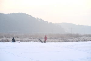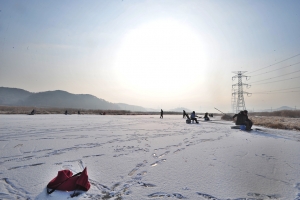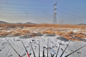 투덜투덜대며 얼음낚시 처음으로 10대까지 널어 봅니다. 하지만 블루길만 덤빕니다.ㅠㅠ |
