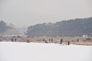 수로 중앙에서 하류권을 바라보고~ 서서히 조사님들이 오후 들어 빠져 나가기 시작합니다. |