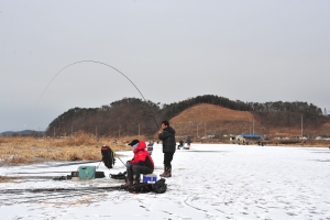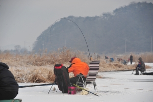 | 오후늦게 중앙부분으로 옮기신 조사님이 손맛을 보십니다. 약 2미터권에서 월척급의 손맛은^^ |